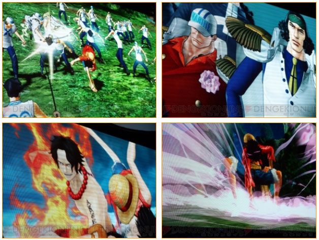 トークはいよいよ本ステージの主題のゲームへ。最新作となる『ワンピース 海賊無双』の映像が流れると、ゲスト陣もお客さんもそのスゴさに唖然。鯉沼プロデューサーが「なんとか間に合わせましたよ……」と、ホっと胸をなでおろしていた。またDSの最新作である『ワンピース ギガントバトル!2 新世界(ニューワールド)』の紹介では、細々としたキャラの動きが一同の注目を集めていた。